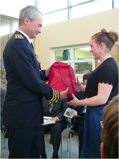 Camille reçoit son prix des mains de M. Jean-Luc Videlaine, préfet du Finistère |