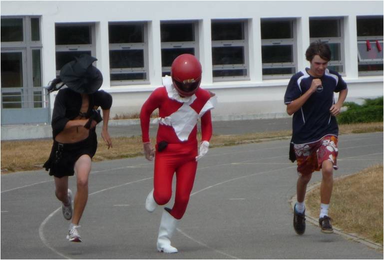 Des élèves déguisés courent par solidarité avec leurs camarades de Réo (juin 2011)