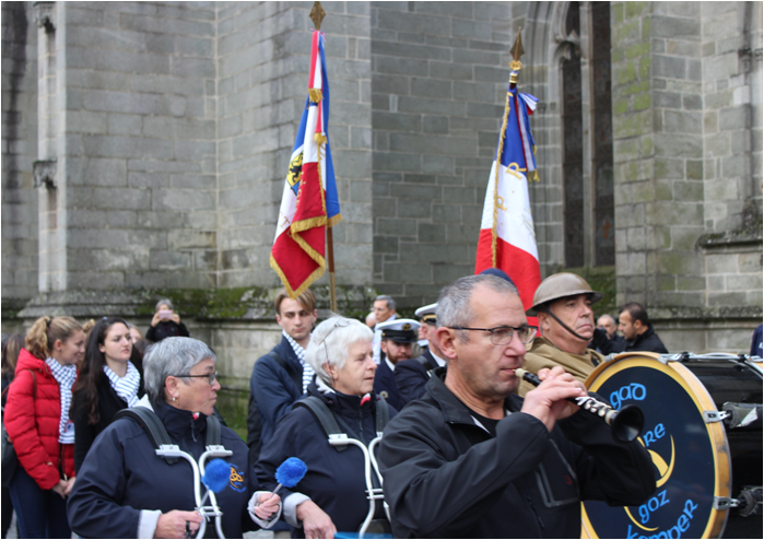 Défilé derrière le bagad Ar Re Goz