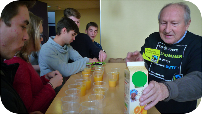 Dégustation de produits équitables par des élèves de 2