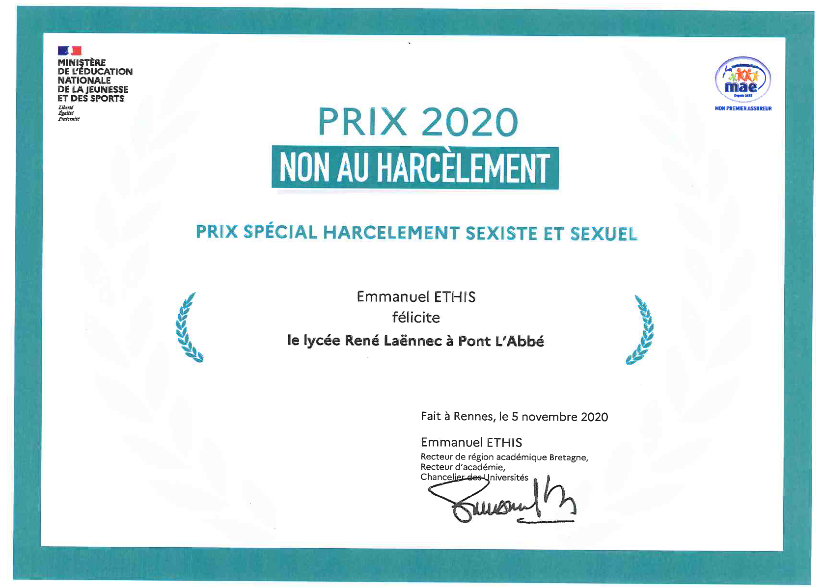 Prix Spécial « NON AU HARCELEMENT »