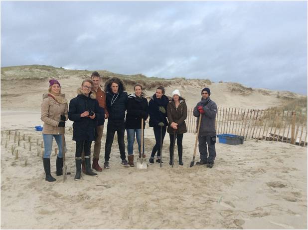 L’équipe presque au complet (Greg s’est fait une entorse à la cheville 2 jours avant…), accompagnés de Gregory Thomas, à droite, devant le chantier terminé |