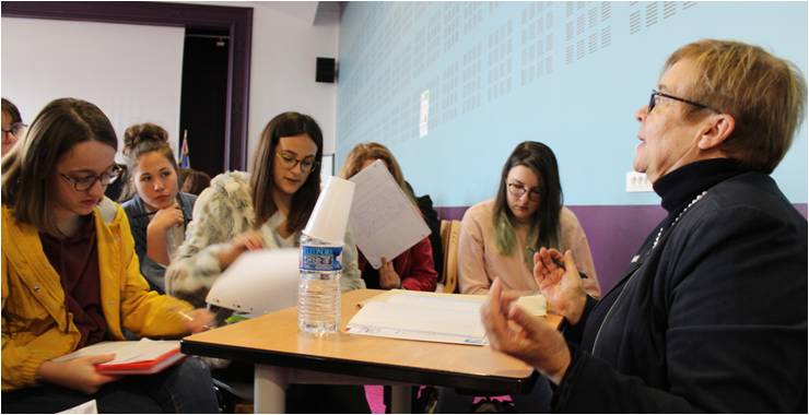 Marion Zylberman exposant son travail aux élèves |