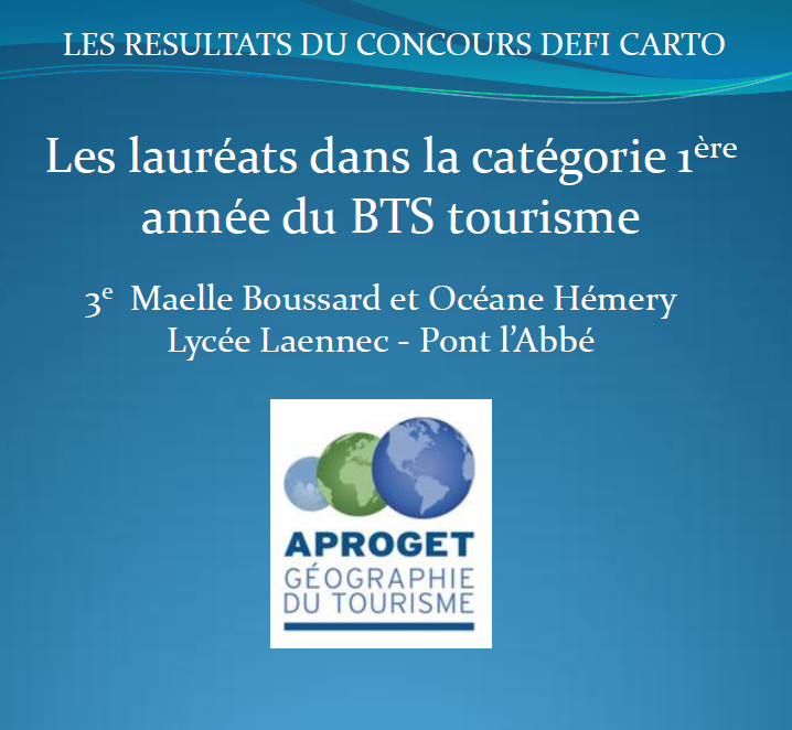 La 2e édition du Défi carto de l’APROGET vient de rendre son verdict. Le jury a publié son palmarès, dans lequel figurent Maelle et Océane, deux étudiantes de BTS 1. Bravo à elles !